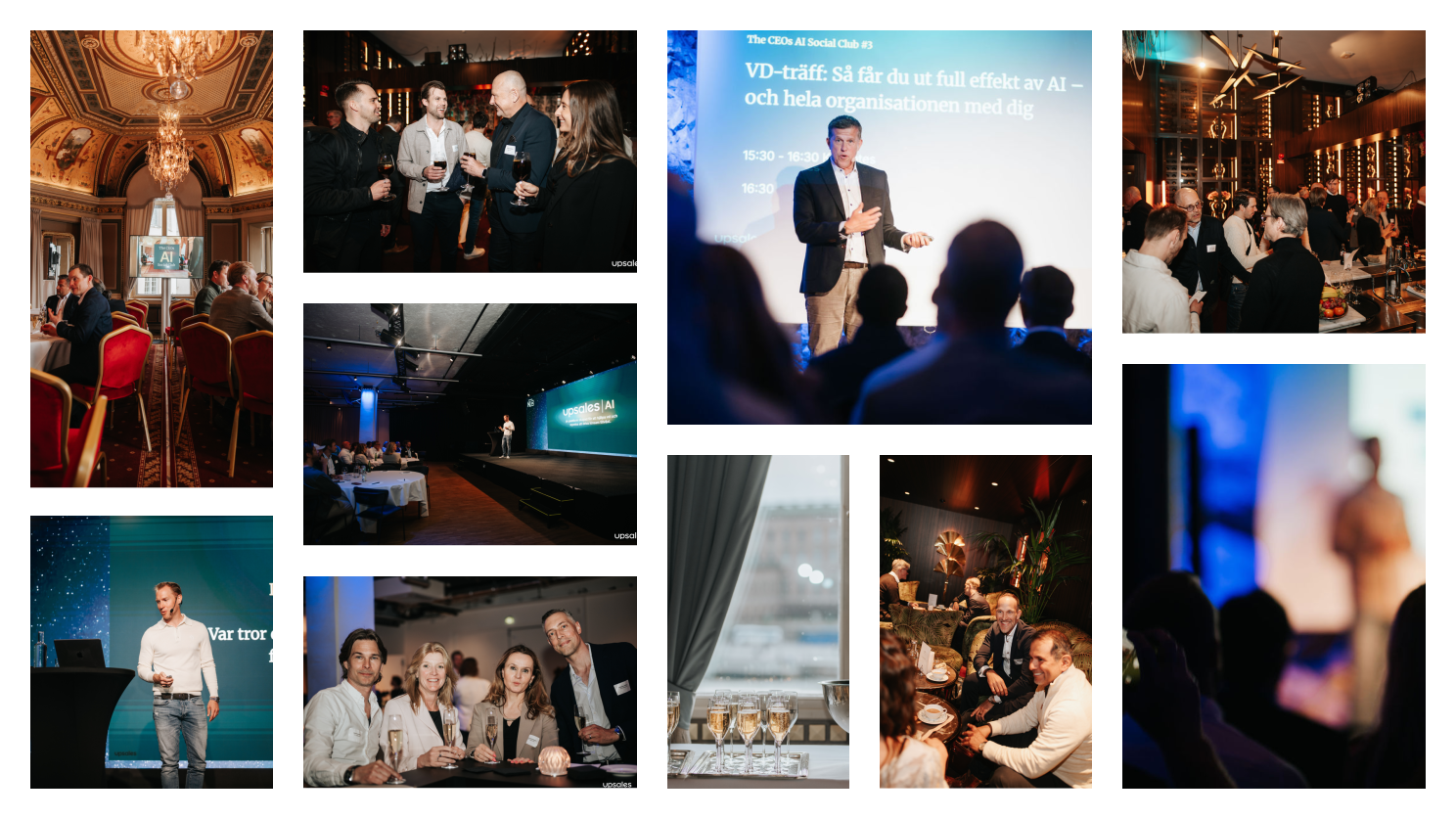 Från Grand Hôtel till Bank Hotel, Skyddsrummet och Sergel Hub, våra senaste träffar har samlat hundratals framåtblickande VD:ar. Dessa exklusiva möten gav konkreta insikter om hur man använder AI för att vässa positioneringen, accelerera tillväxten och proaktivt hantera risker.